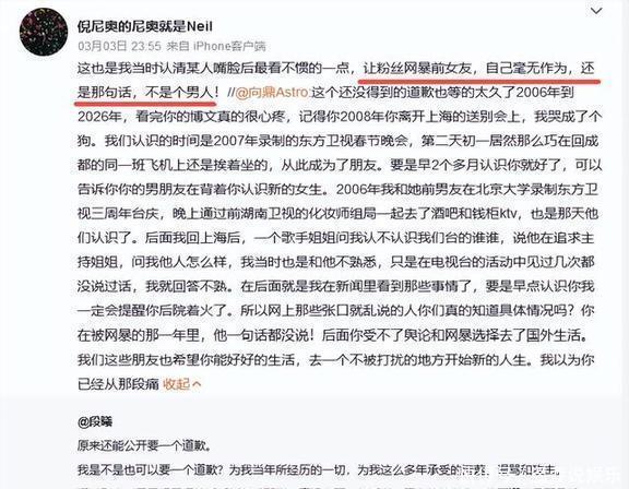张杰以前的助理倪尼奥,也转发了段曦的长文,话里话外暗示张杰让粉丝去网暴前女友,还骂他“不是个男人”。